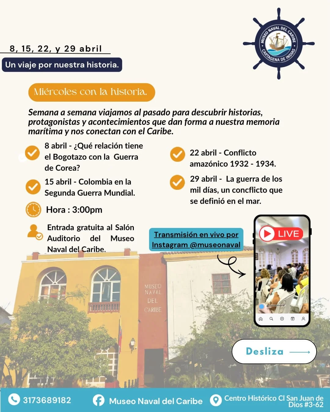 El Museo Naval del Caribe es más que un espacio de exposición. Es un lugar para aprender sobre la vida marítima, la defensa naval y los valores que forjaron la nación. Cada visita ofrece una conexión directa con la historia y la tradición marítima del país. Ven y navega con nosotros por este viaje en el tiempo. El Museo Naval del Caribe te espera para vivir una experiencia única y educativa. Sumérgete en la historia naval de Colombia desde el corazón de Cartagena.